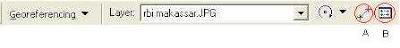 Prosedur registrasi raster tersebut: (dalam latihan ini data raster adalah peta RBI Makassar yang telah di scan, format data adalah jpg)