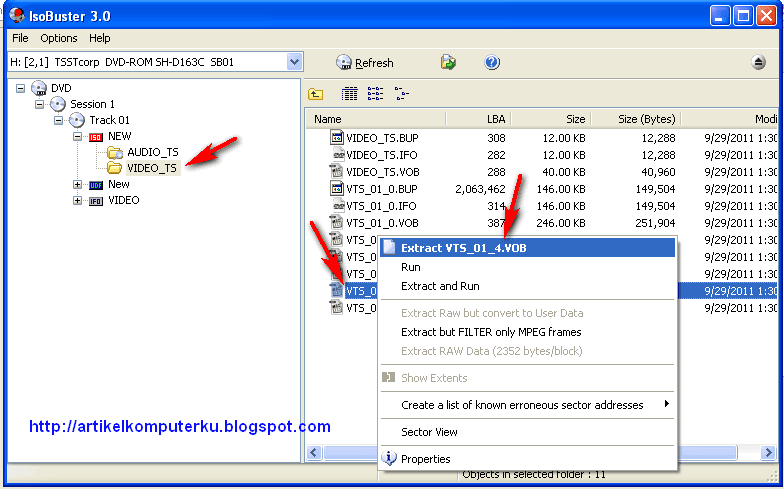 Sebenarnya dengan software isobuster versi free, kita sudah dapat melakukan penyelamatan terhadap data /file dalam sebuah kase VCD /DVD Film atau DVD yang berisi data dokumen/aplikasi lainnya. Dalam beberapa kasus yang pernah ditanyakan oleh teman-teman tentang cara mengcopy DVD Film ke hardisk. Secara manal cukup dicopy paste lewat windows explorer, namun jika kualitas CD/DVD jelek mungkin karena ada bad sector atau ada baret (tergores) pada permukan DVD maka biasanya pesan yang muncul adalah : "Cannot copy VTS_01_4. The request could not be performed because of an I/O device error". ika kasusnya seperti ini maka Isobuster dapat menjadi salah satu pilihan untuk mengcopy file DVD ke hardisk.